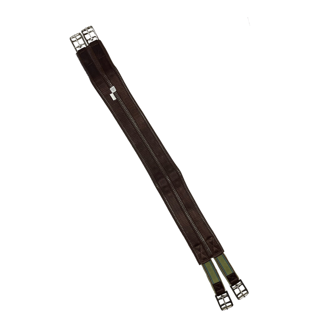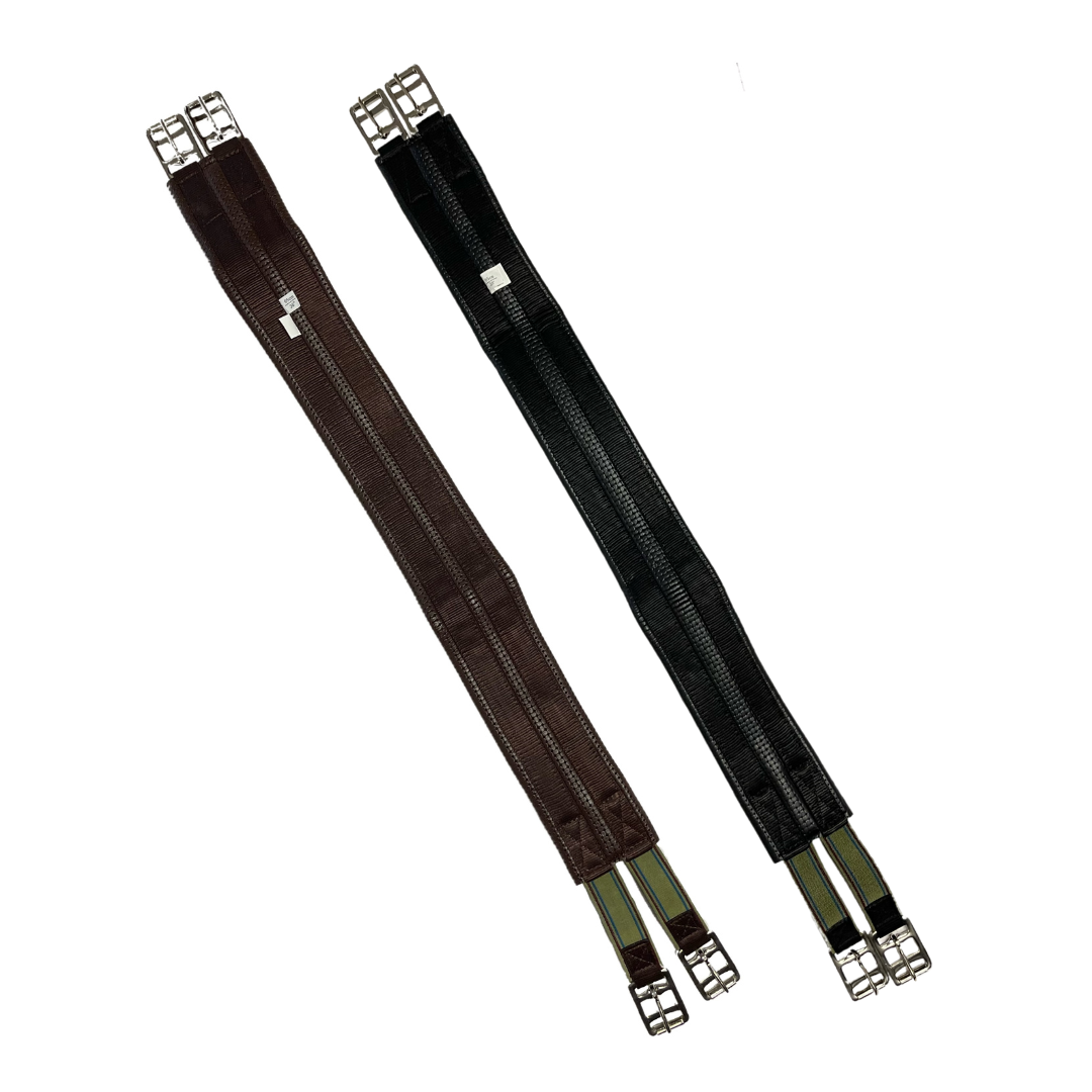 Fitzwilliam girth made from breathable material to prevent galling elastic ends for easy adjustment. Suitable for saddles with short points. Available in brown or black.