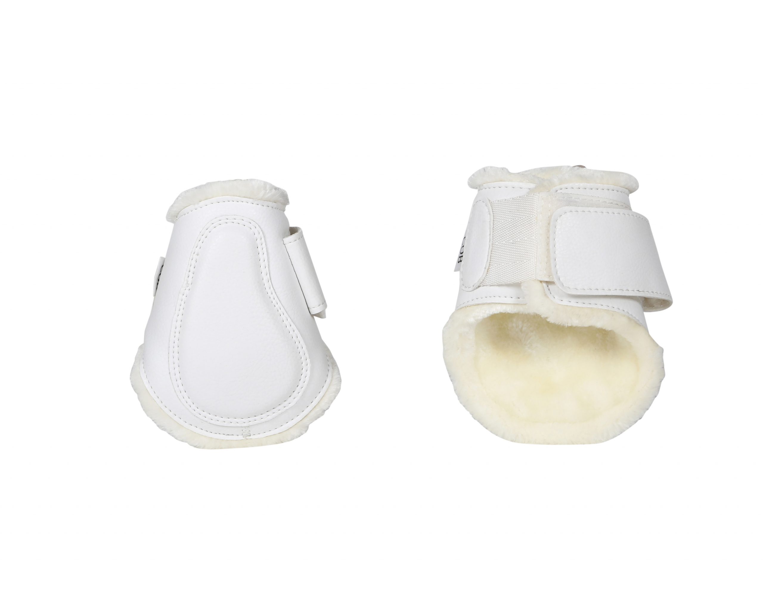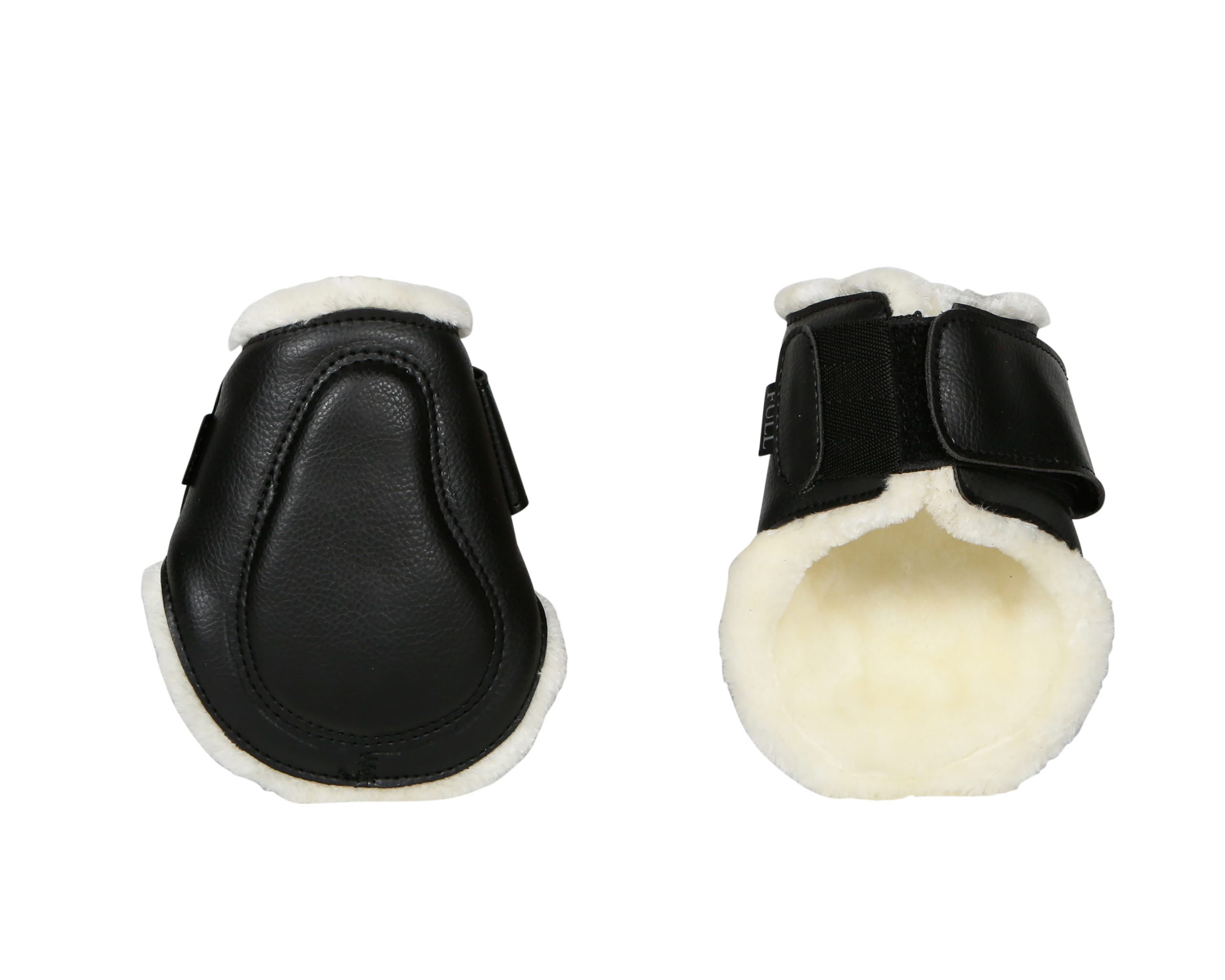 Fleece lined, leather look hind fetlock jump boots with velcro closures. Available in black and white, cob and full size. Matching open front jump boots also available.