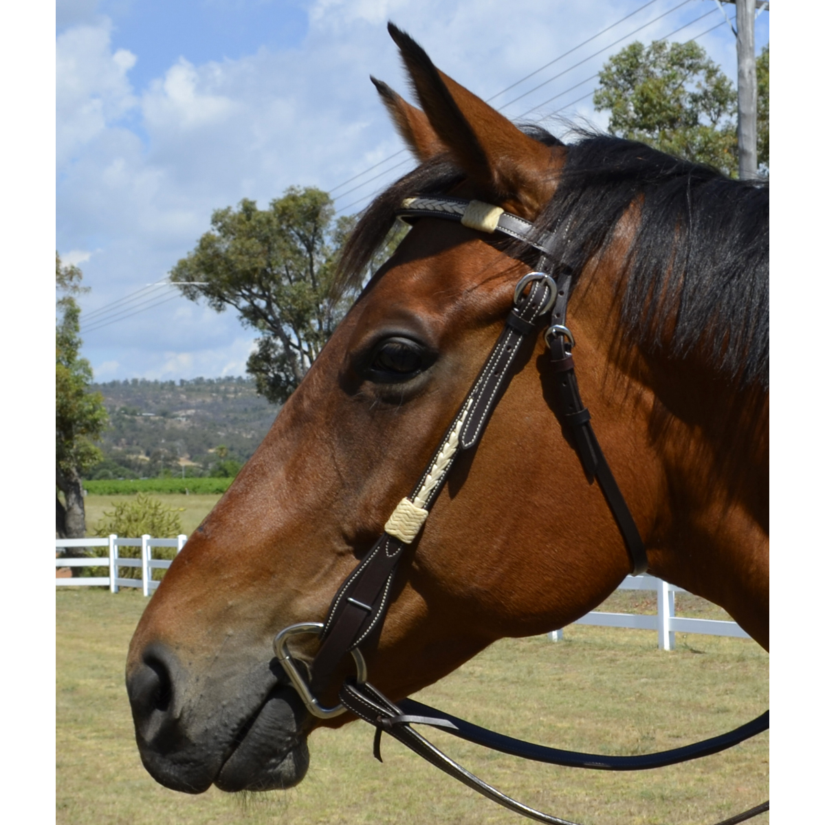 The Lazy River braided rawhide western bridle is a simple but attractive bridle in dark brown leather. The braided rawhide details are perfect for those who don’t want super blingy bridles, while still standing out. The dark brown leather against the rawhide contrasts beautifully, which will suit any horse and any western discipline. Available in sizes cob and full.