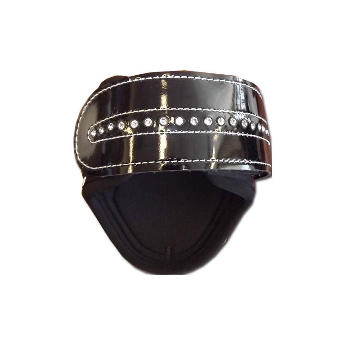 The Ascot Crystal Fetlock Boot has a stylish patent look with secure velcro straps. This boot features neoprene lining for added comfort to your horses leg and a line of white crystals for an added touch of prestigious flair!