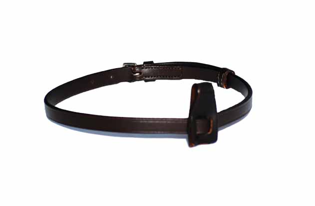 Easily convert any cavesson noseband to a hanoverian. Simply fold the converter over the noseband and thread the flash strap through as pictured.