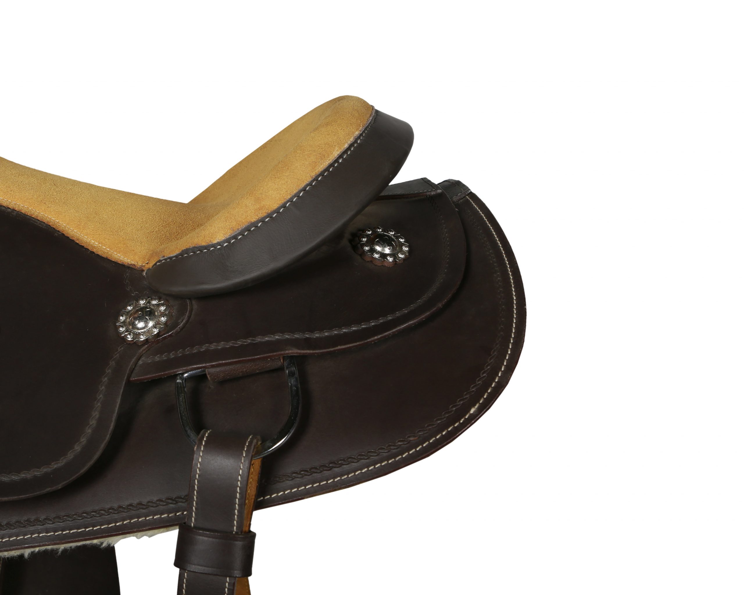 The Lazy River Western Pleasure Saddle is a beautifully crafted Western Saddle by the renowned Lazy River. This saddle is suitable for all types of western riding, detailed with dark brown leather and a beige sueded seat. Crafted with a well balanced seat for comfort of rider and horse, this Western Pleasure Saddle fits horses brilliantly. Including lined sheepskin, a padded seat for extra comfort, easily adjustable fenders for correct leg position and is fitted with an 8 inch full QH tree which will fit almost all horses! The Lazy River Western Pleasure Saddle is available in sizes 15″, 16″ & 17″ seats.