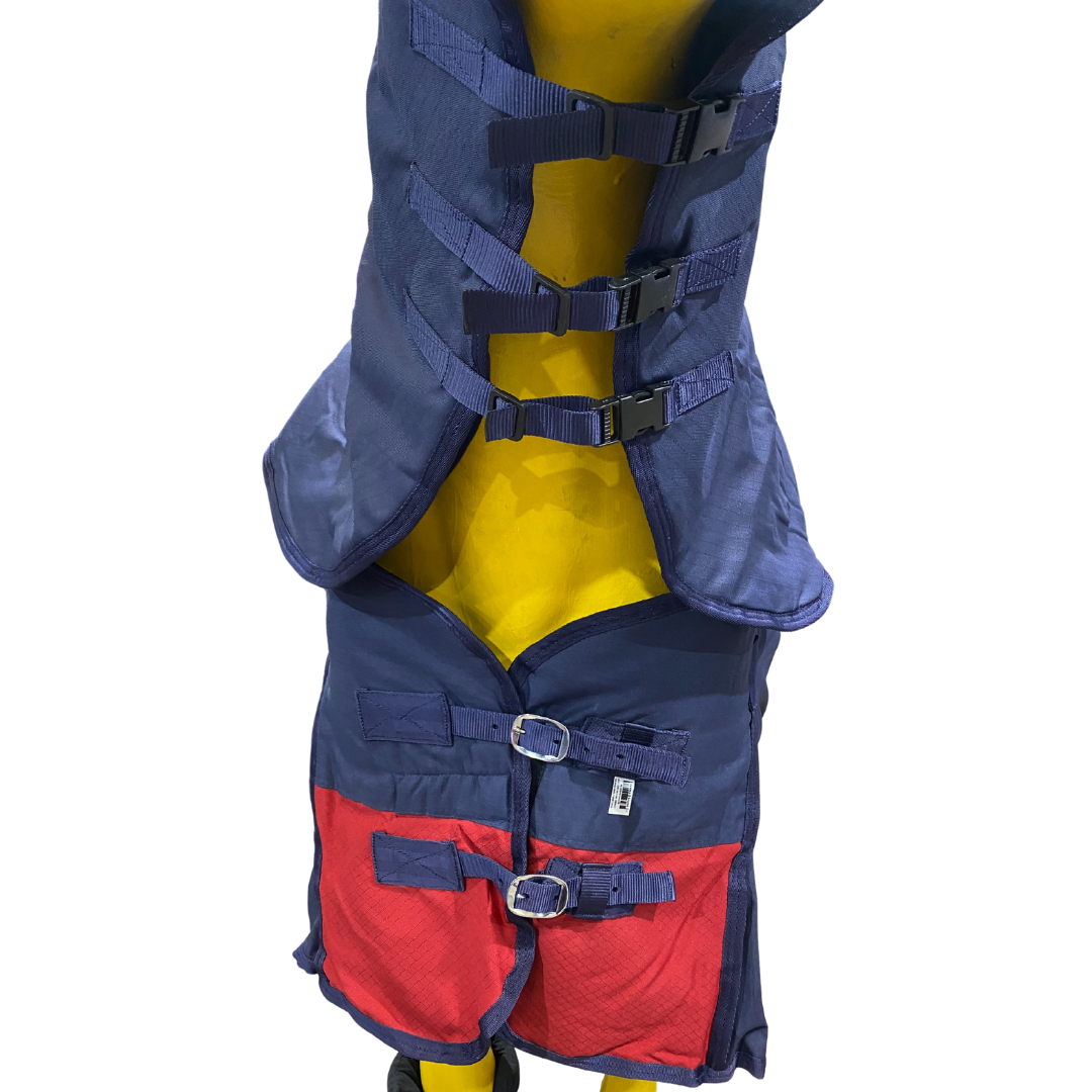 Rugz 600 denier with 200 grams of fill is an excellent combo rug for those cooler days. A rainproof rug with double chest buckles, triple neck clip straps, double surcingle straps and two adjustable/removable tail straps with bull buckles. This combo has great breathability and circulation, a fleece lined poll, shoulder gussets for flexibility and a poly cotton lined inner shell. This combo is available in sizes 4’9-7’0.