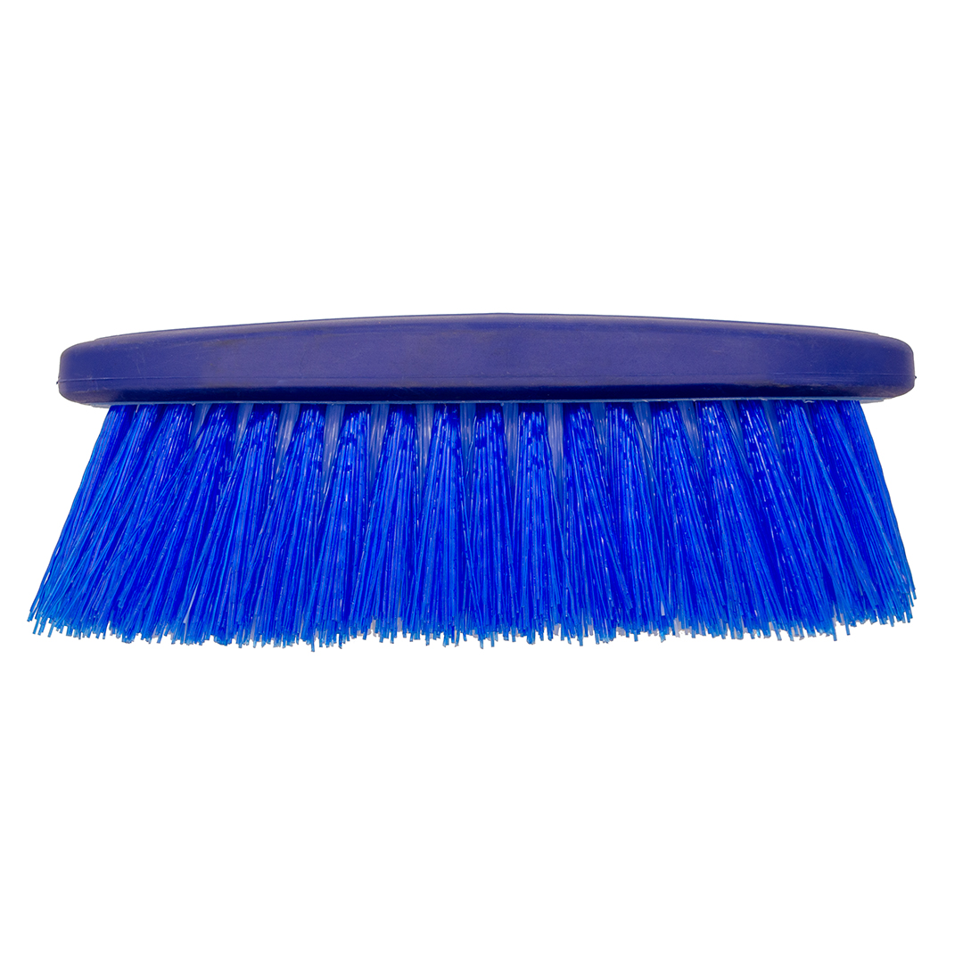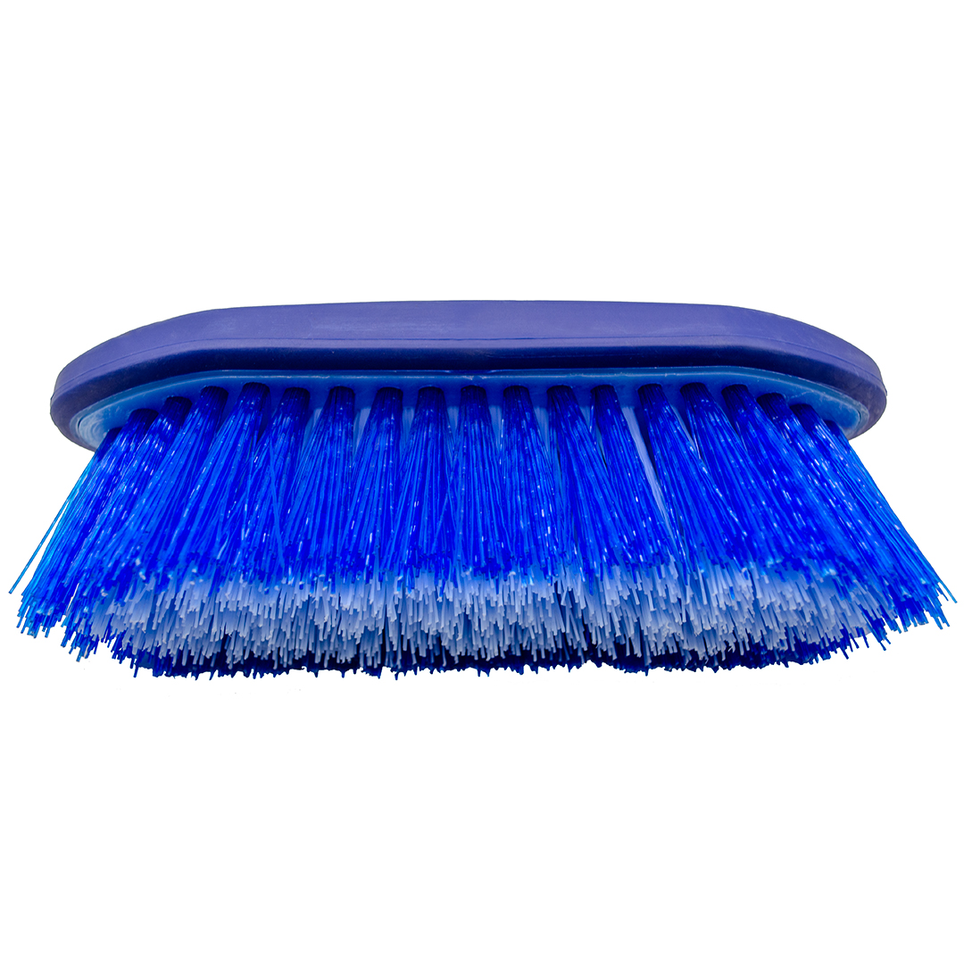 A two-tone dandy brush with a soft grip and durable hard bristles.
