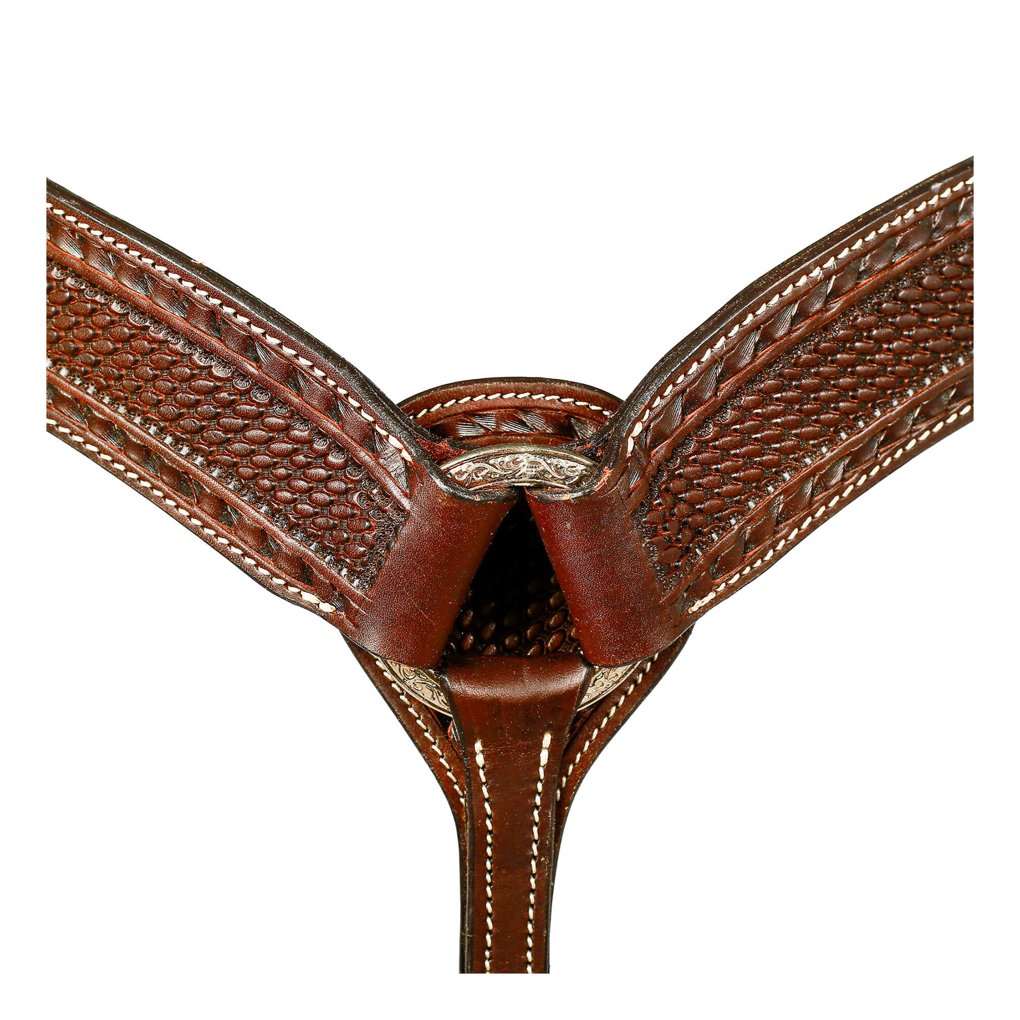 A traditional ‘Y’ shaped breast collar with classic basket and border tooling.