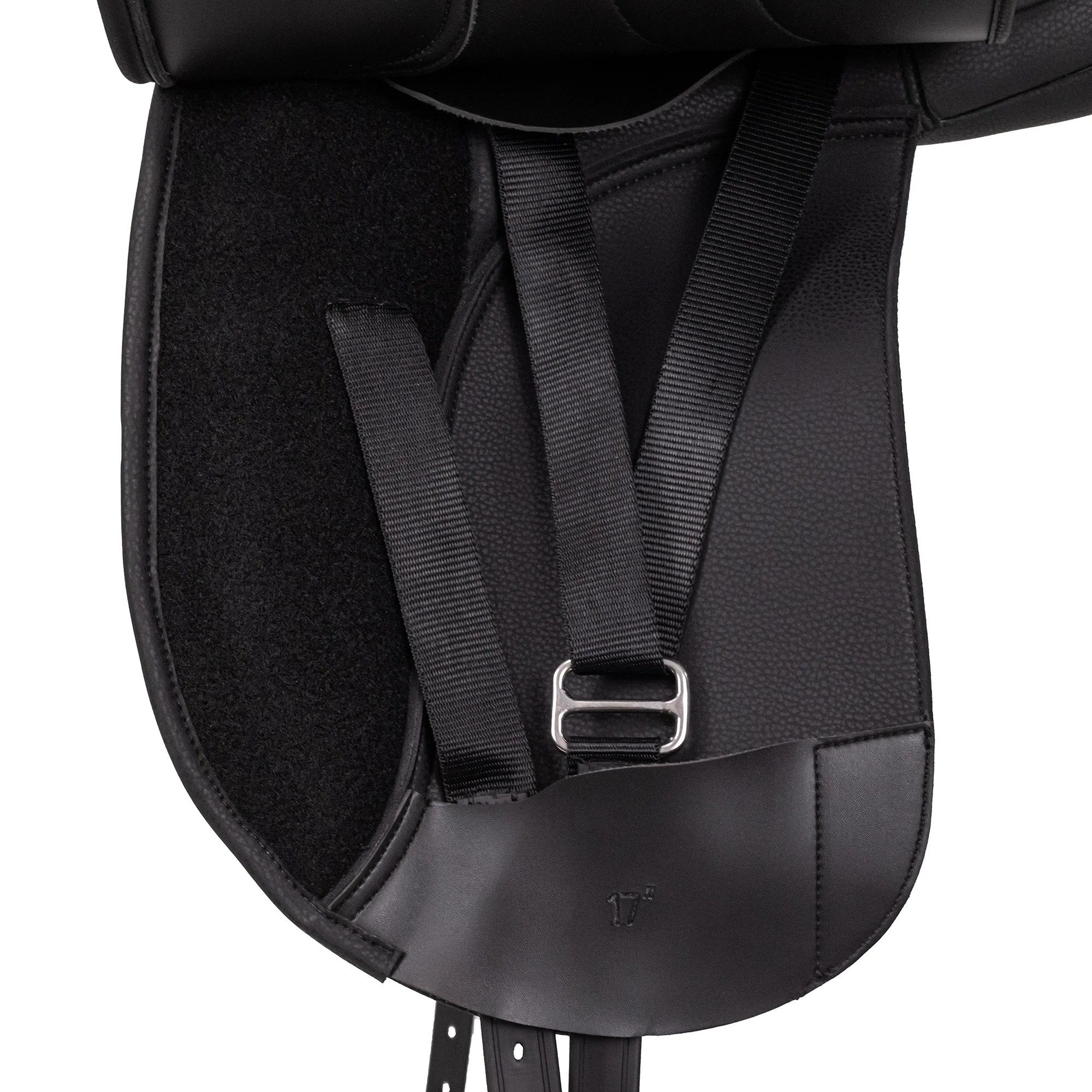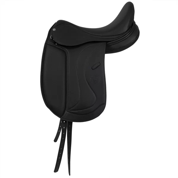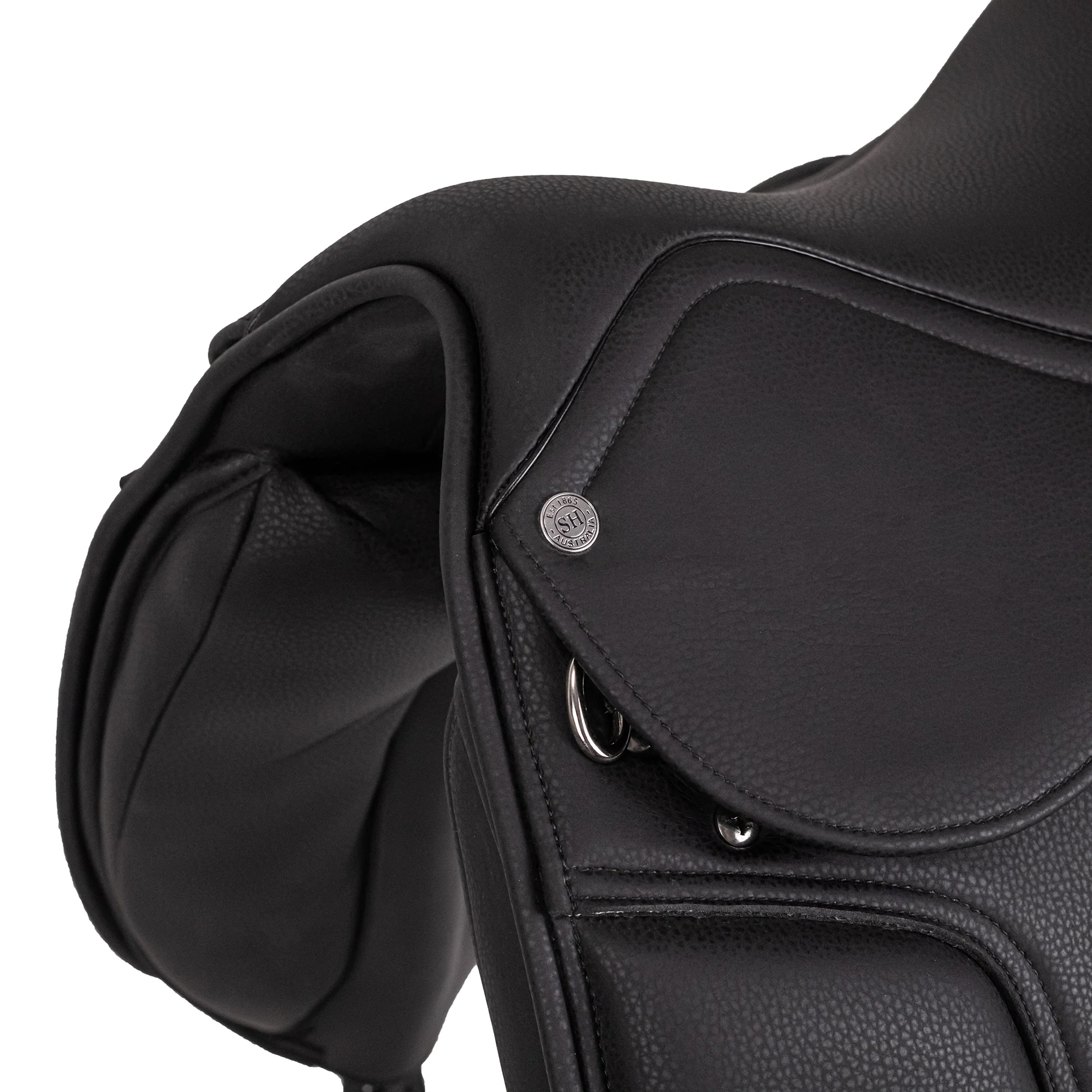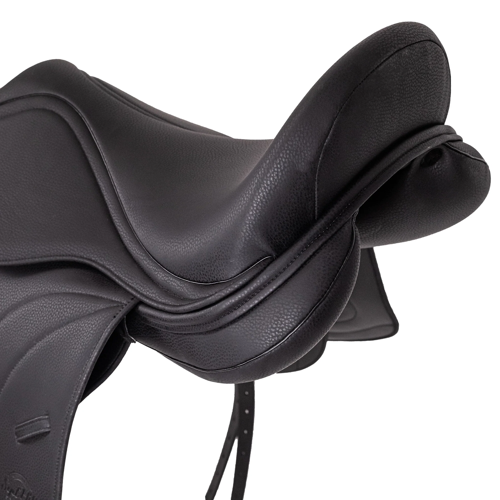 The Syd Hill Amata Dressage saddle is crafted from textured & supple synthetic grip leather offering the look and feel of traditional leather with the benefit of less maintenance and cleaning.