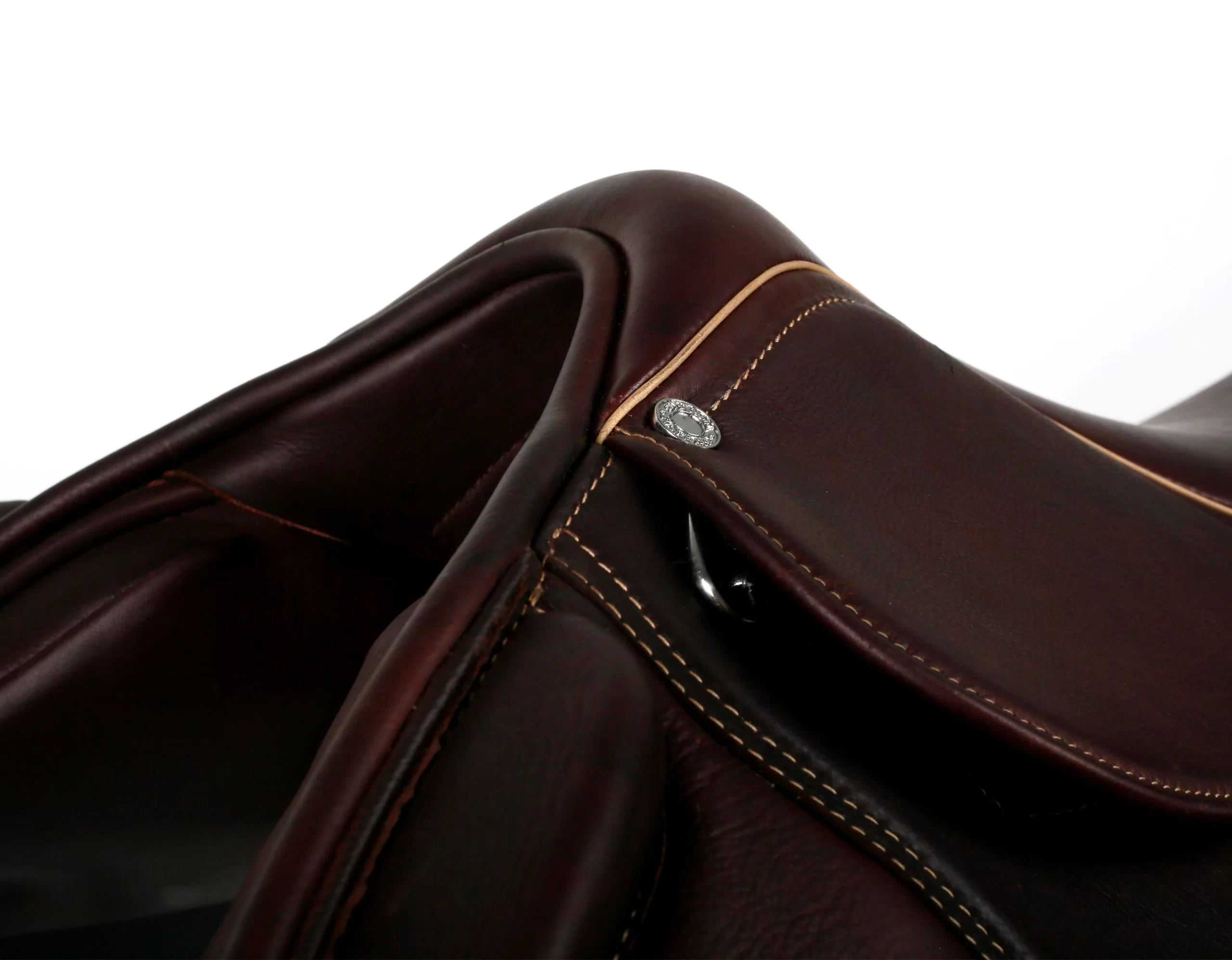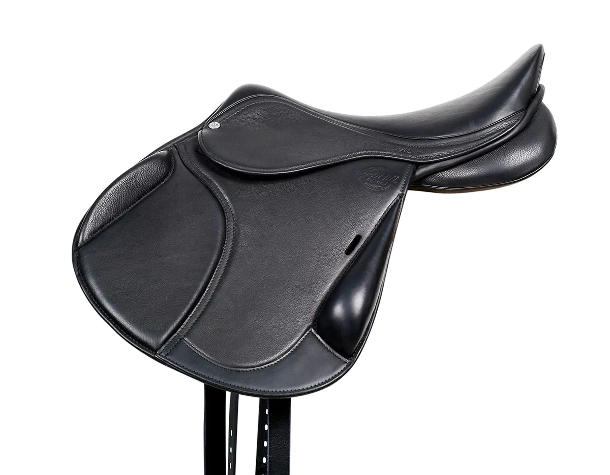 Key features include a supportive seat and forward-cut saddle flaps that ensure a secure and balanced position. Pre-formed thigh supports offer added stability, enhancing the rider’s security over jumps. The Y-girthing system with long points reduces bulk under the rider’s leg, ensuring comfort and freedom of movement.