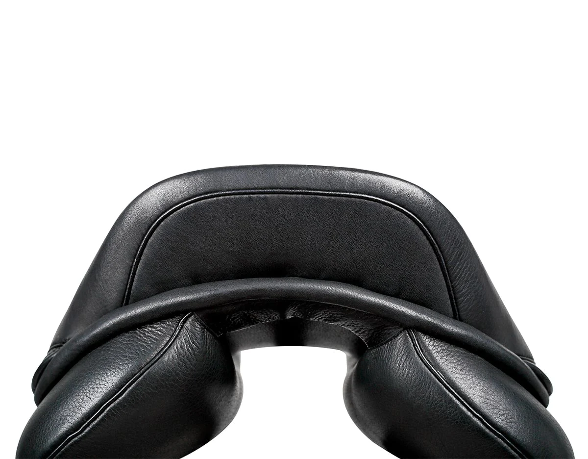 The saddle’s gusseted, flock-filled panels are shaped to maximize weight distribution and provide a close contact feel, improving communication with the horse. A wide channel ensures ample spine clearance, reducing pressure on the horse’s back.